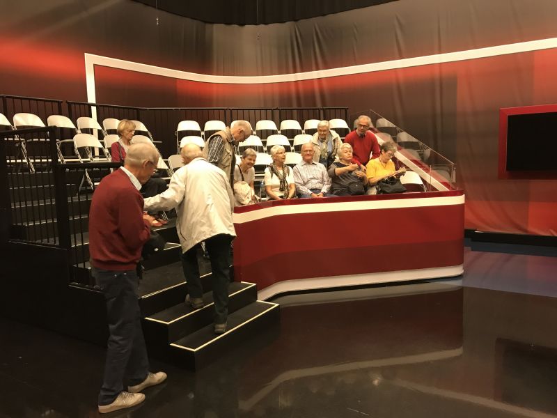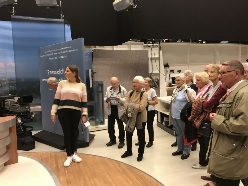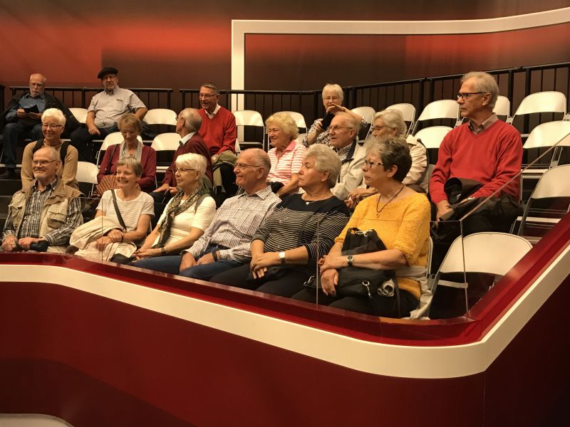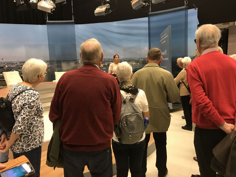 Am 25. September 2019 machten wir uns mit 19 Personen der Tanzsportgruppe auf den Weg zum WDR nach Köln. Dort sahen wir zuerst einen kurzen Film über den Sender. Anschließend führte uns eine kompetente junge Frau durch die Studios und erklärte die Technik. Zuerst sahen wir das Studio, aus dem das Morgenmagazin, Hier und Heute und Markt gesendet werden. Dies geschieht durch Austausch der verschiedenen Requisiten - z.B. Sofaecke für MOMA oder Küchenzeile für Hier & Heute usw. Auf die riesigen LED-Wände werden die unterschiedlichen Hintergründe projiziert. Der weitere Weg führte uns in den Presseclub. Danach setzten wir uns auf die Zuschauertribüne von Hart aber Fair und konnten gedanklich miterleben, wie Moderator und Experten miteinander diskutieren.